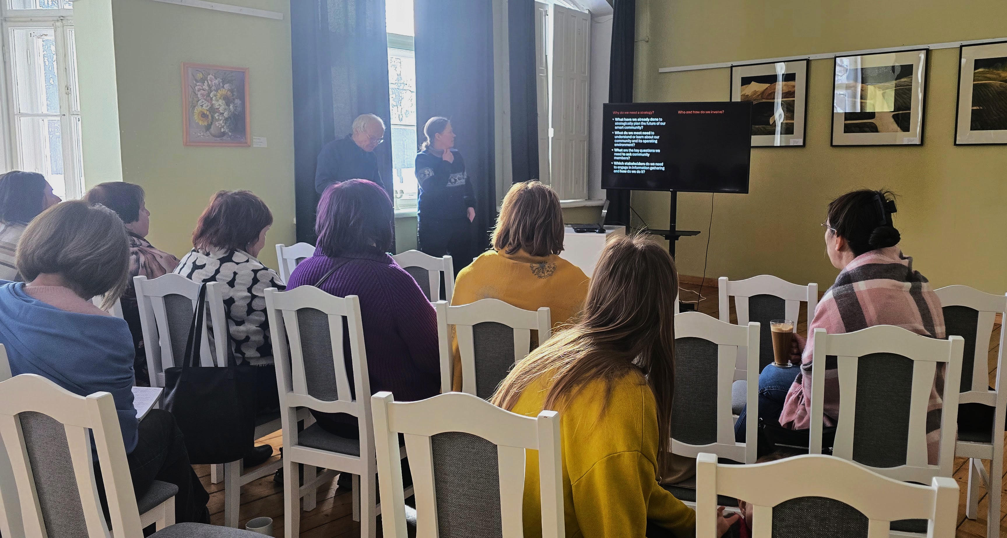 •Viedo ciemu stratēģiju sagatavošanas un īstenošanas process – Egle Tammeleht no Vajangu village association NGO prezentēja detalizētu pieeju stratēģiju izstrādei. Dalībniekiem tika piedāvāti konkrēti rīki, piemēri un metodes, ko izmantot, veidojot savas ciemu attīstības stratēģijas - vietējo resursu un iespēju analīze, interešu grupu iesaiste un motivēšana, radošās darbnīcas ideju ģenerēšanai, projekta ideju izvērtēšana pēc ietekmes un īstenojamības, stratēģijas ilgtspējas nodrošināšana – kā panākt, lai to neviens “nenoliek plauktā”.